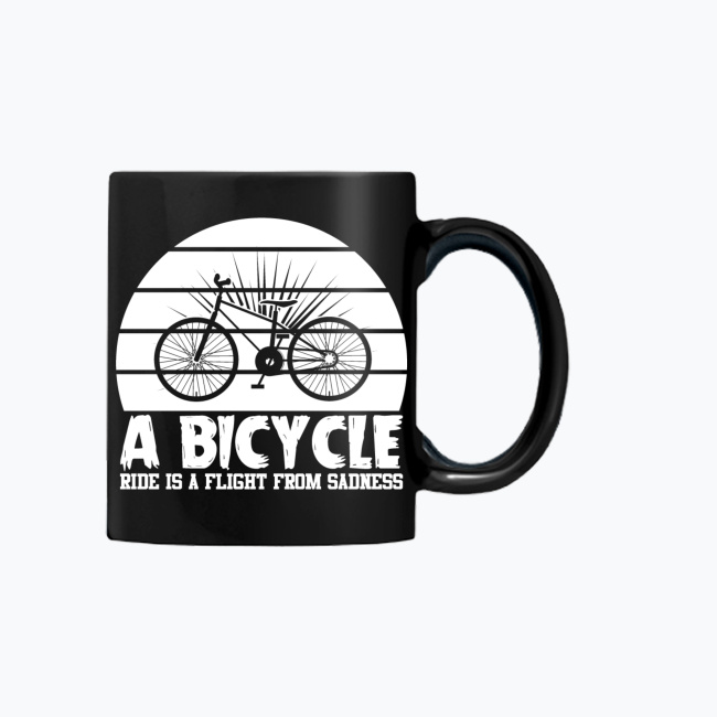 Czarny kubek „A Bicycle Ride Is a Flight from Sadness” – ucieczka, która naprawdę działa