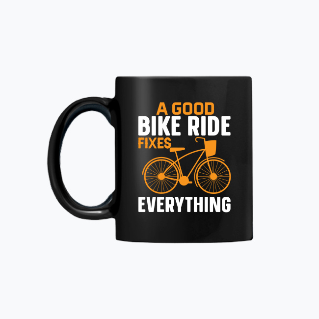 Czarny kubek „A Good Bike Ride Fixes Everything” – prosta recepta na lepszy dzień