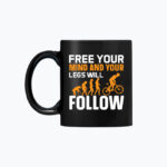 Czarny kubek „Free Your Mind and Your Legs Will Follow” – wolna głowa, lekka jazda