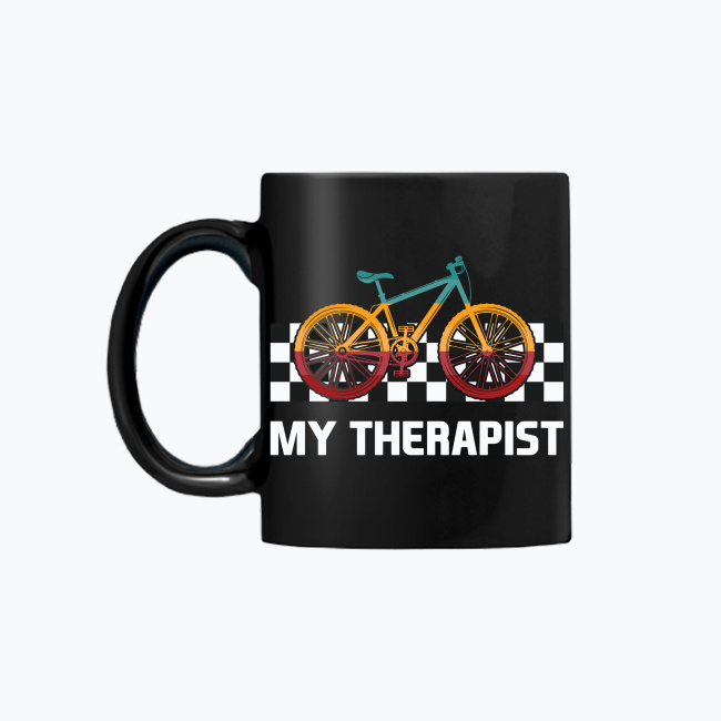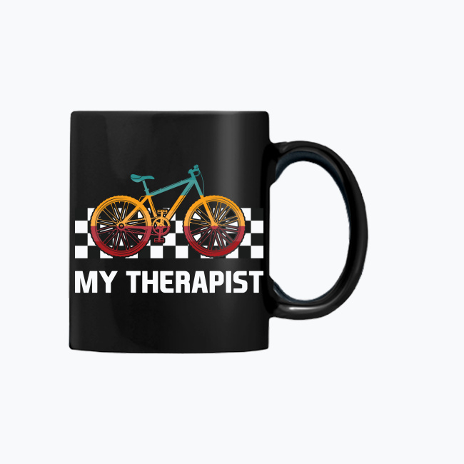 Czarny kubek „My Therapist” – rower jako najlepsza terapia