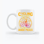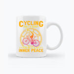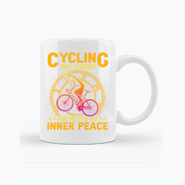 Ten kubek trafia w sedno doświadczenia wielu rowerzystów. Hasło Cycling isn’t a hobby – for me it’s my inner peace mówi wprost: jazda na rowerze to coś znacznie więcej niż hobby. To moment oddechu, skupienia i porządkowania myśli. Subtelna grafika rowerzysty na tle zębatki symbolizuje rytm, powtarzalność i spokój płynący z ruchu.