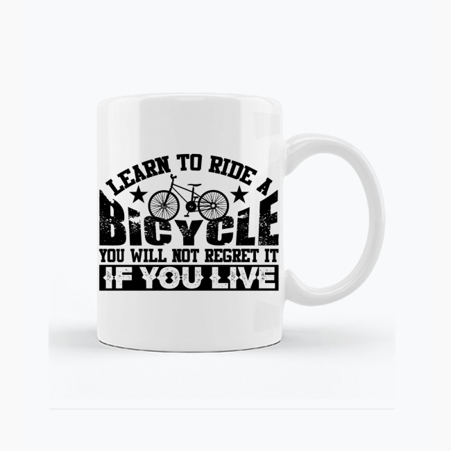 Ten kubek niesie prostą, ale bardzo mocną myśl: Learn to ride a bicycle. You will not regret it, if you live. To hasło łączy nostalgię, życiową mądrość i lekką prowokację. Surowa, czarno-biała grafika z wyraźną typografią nadaje całości charakter vintage i autentyczności.
