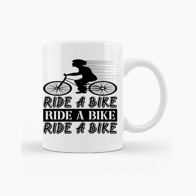 Ten kubek nie filozofuje. On działa. Powtarzające się hasło Ride a Bike w połączeniu z dynamiczną sylwetką rowerzysty tworzy mocny, motywujący przekaz: wstań, wsiądź na rower i jedź. Minimalistyczna, czarno-biała grafika podkreśla ruch, tempo i determinację.