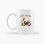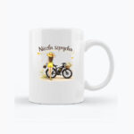 Stylowy kubek z ilustracją inspirowaną rowerową wolnością i nowoczesną mobilnością. Subtelna grafika przedstawiająca kobietę stojącą przy rowerze elektrycznym została zaprojektowana z myślą o białym kubku, dzięki czemu nadruk pozostaje czytelny, estetyczny i nie zlewa się z tłem.